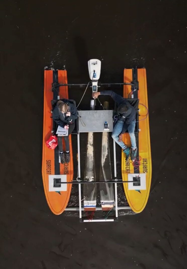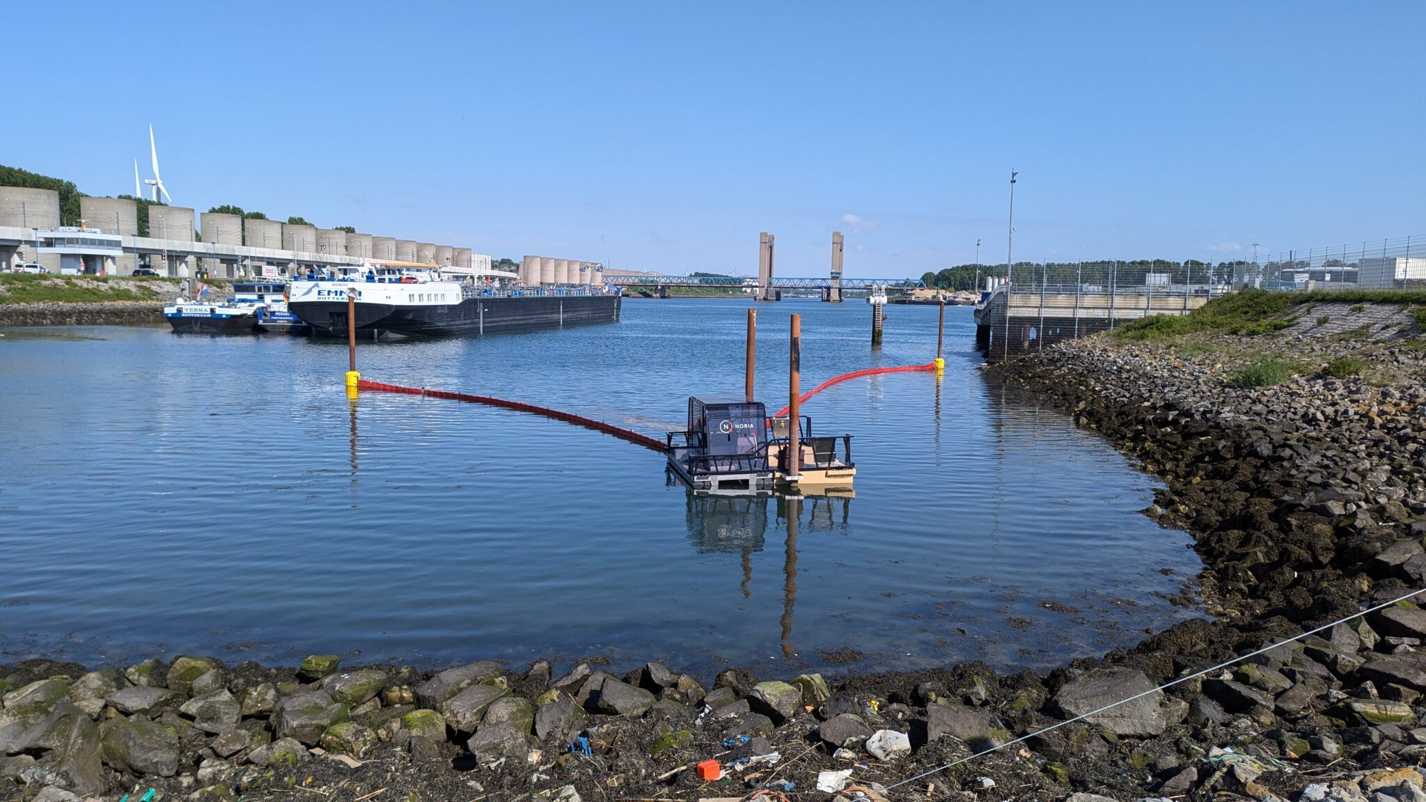 This setup provides, with the help of artificial intelligence models, insight into the plastic inflow (flux) and how it is distributed across the waterway from quay to quay.